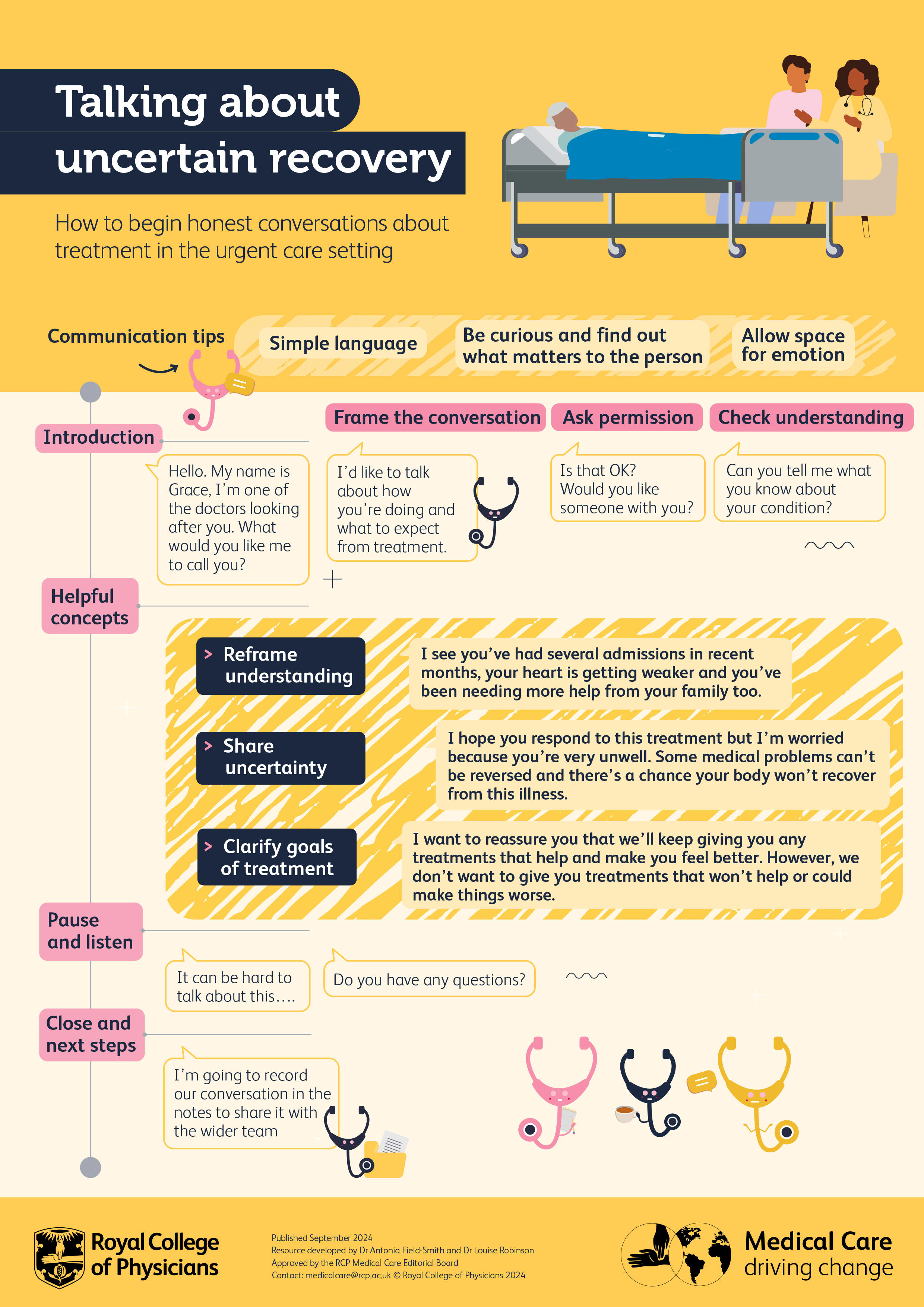 This guide is to support doctors to have honest conversations with patients, and those important to them, about realistic treatment goals and uncertain recovery.